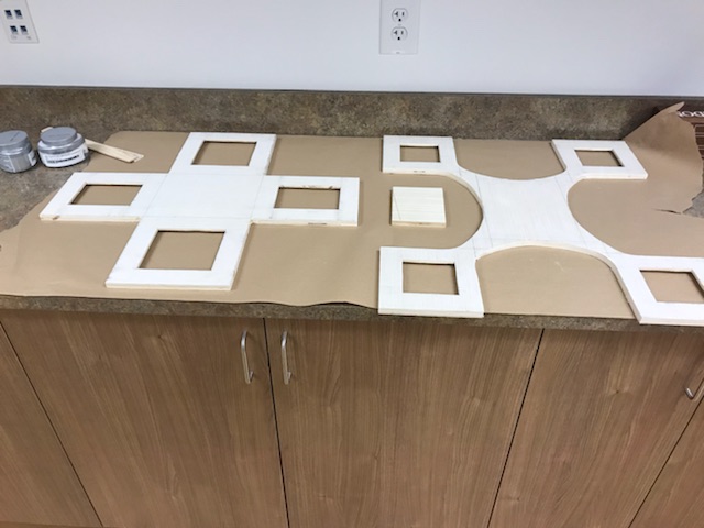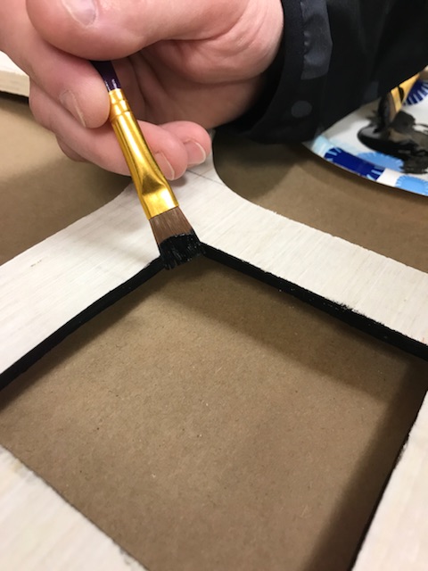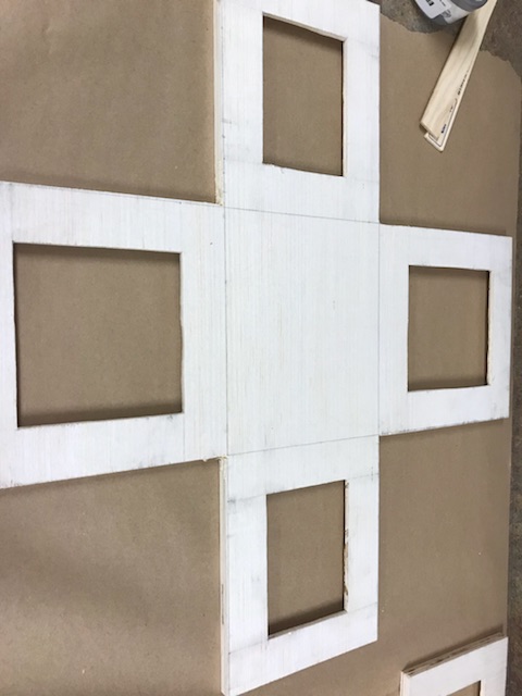 A small square piece of plywood is attached to the backside of the top component of the frame using wood glue and staples. This will provide the 3-D appearance of the frame once both the top and bottom components are attached together. The frame is now ready for paint, and this step should be done before attaching the top and bottom pieces together.