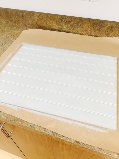 To begin this project, the RevBead® was cut to the desired size of 20” x 15”, and the edges were lightly sanded.  A coat of light gray paint was applied to the RevBead®.  Once dry, the sign will be ready for decorating.