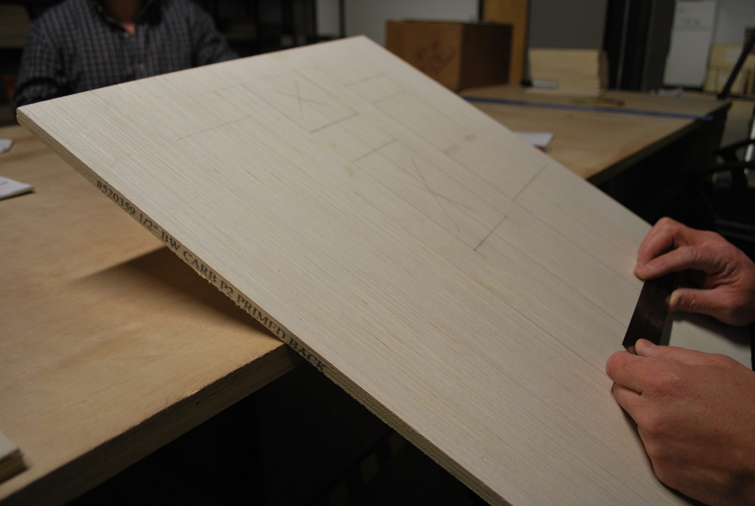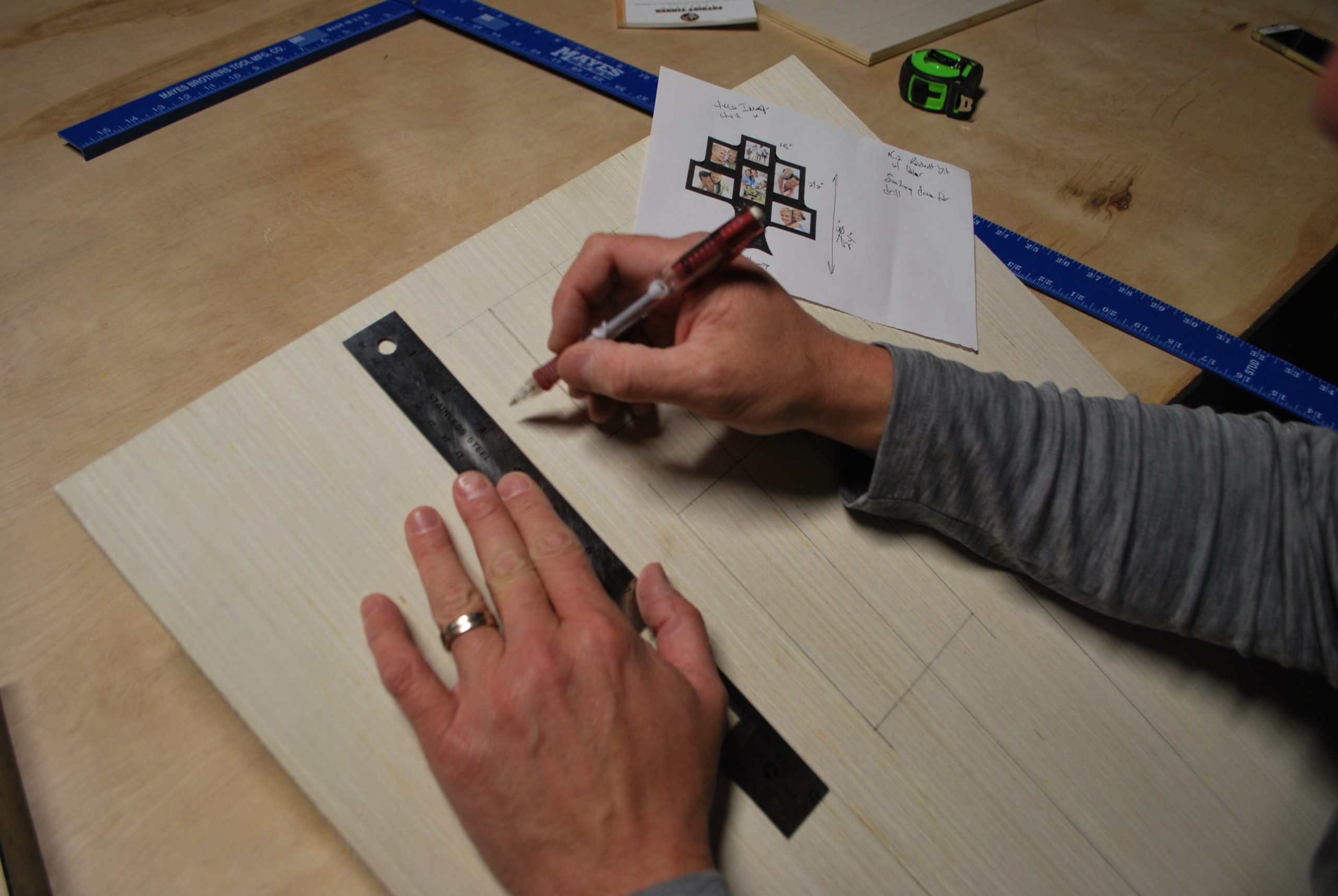 See pictures below of the initial steps and check back to see progress on our cabinet grade and RevolutionPly® plywood collage frame.